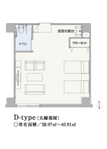 2部屋を借りて、1部屋を団らんのリビングとして、もう1部屋は寝室用として使用目的を分け、空間を有効利用するパターン。 たとえば、お互いのプライバシーを尊重したいご夫婦にもお勧めです。